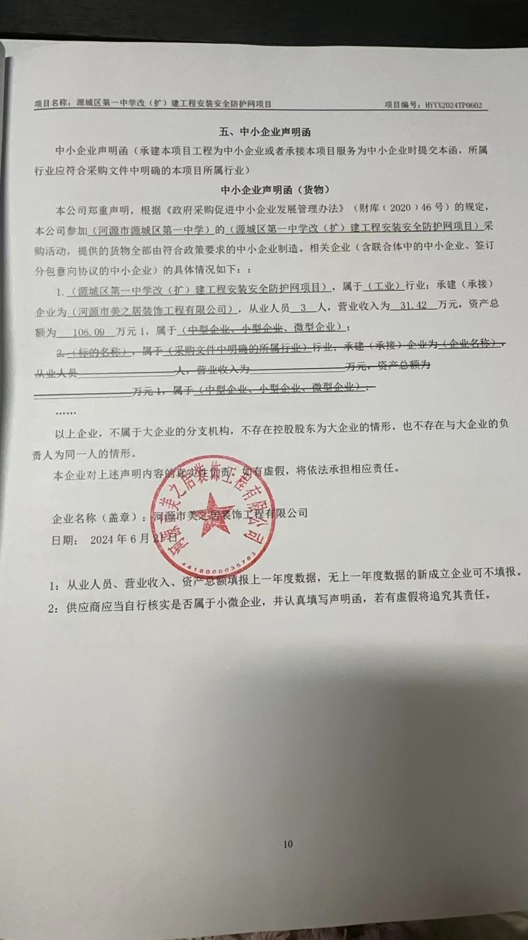 二、項目名稱:源城區(qū)第一中學改(擴)建工程安裝安全防護網(wǎng)項目